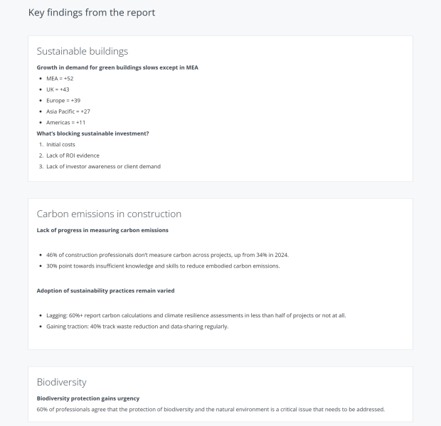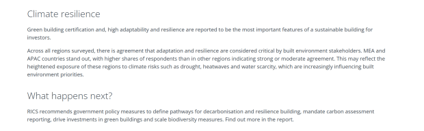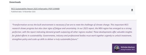 Each year, RICS releases a sustainability report, showcasing how the climate agenda is shaping trends and practices around the world. To support the report, I created copy for the webpage that highlights key messaging, stats and quotes, with the ultimate call-to-action to download the report.